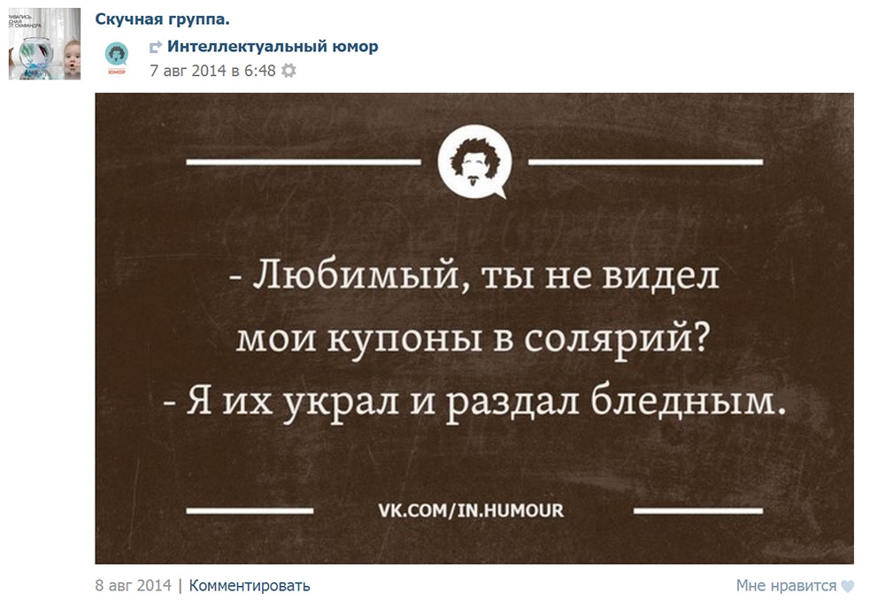 Для исправления ситуации следует начать разбавление однообразной информации анекдотами, умными высказываниями с картинками, конкурсами, голосованиями и т. д. Желательно чтобы все это было хотя бы отдаленно связано с основной тематикой группы.