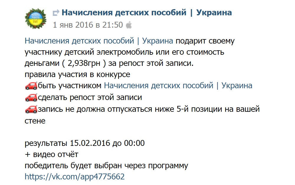 - подарки пользователям, победивших в устраиваемых конкурсах;