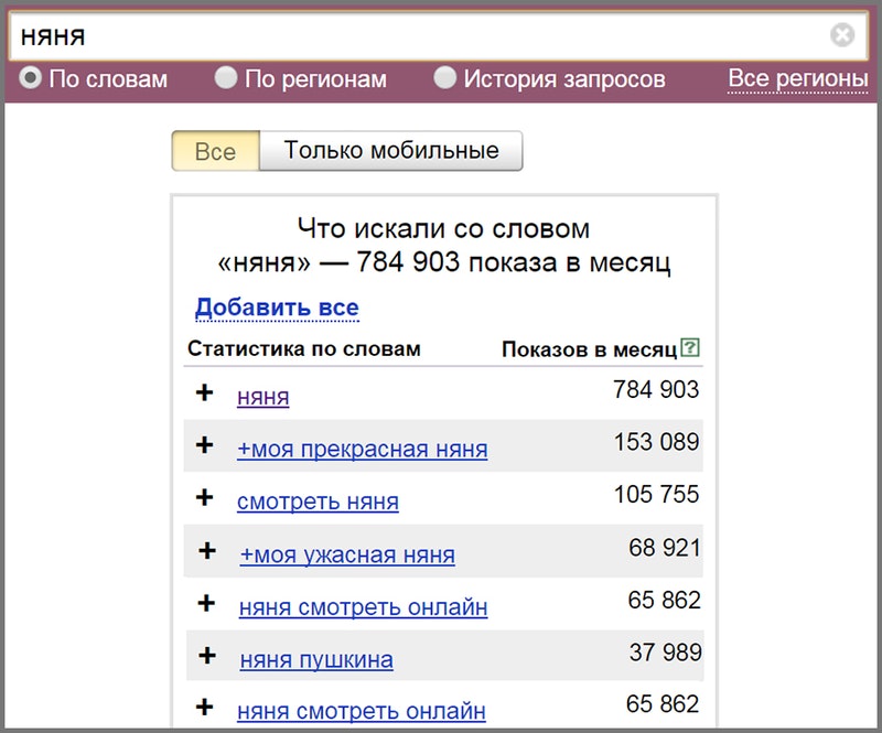 Подбор нужных ключевых слов в Яндекс Вордстат