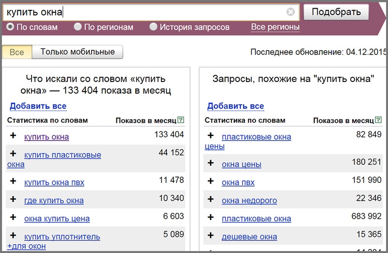 Подбор ключевых слов с помощью Яндекс Вордстат