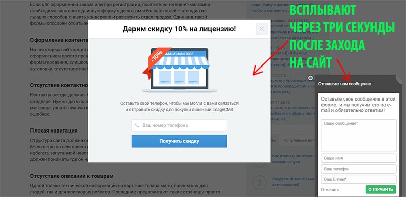 - Использование всплывающих навязчивых призывов к действию.
